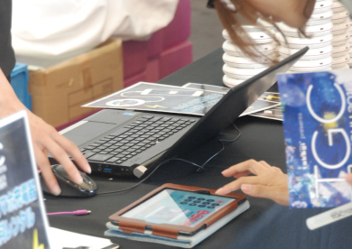 会場内協賛ブースにおいて、電子マネーのプロモーションツールとしてU4Bを活用。専用のスタッフが誘引し、アンケートの回答を条件にU4Bを無料でレンタルを行う。規定の回答をしたお客様を、電子マネーのプロビジョニングの案内を行う。